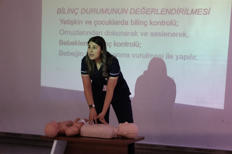 Dört oturumdan oluşan ve eğitimcilerin de katıldığı ilk yardım eğitiminde Tabur, “Yaşam boyunca ne zaman ihtiyaç duyulacağını bilemediğimiz doğru uygulanacak ilk yardım ile belki de birden fazla kişinin hayatını kurtarabiliriz” dedi.