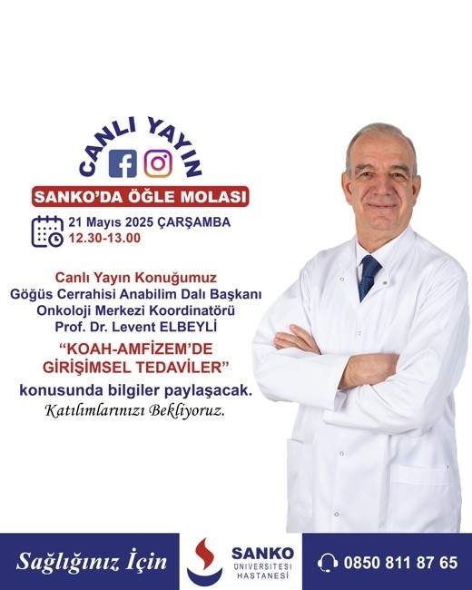 Canlı yayın konuğumuz Göğüs Cerrahisi Anabilim Dalı Başkanı\Onkoloji Merkezi Koordinatörü Prof. Dr. Levent Elbeyli “KOAH -AMFİZEM’DE GİRİŞİMSEL TEDAVİLER” konusunda bilgiler paylaştı.