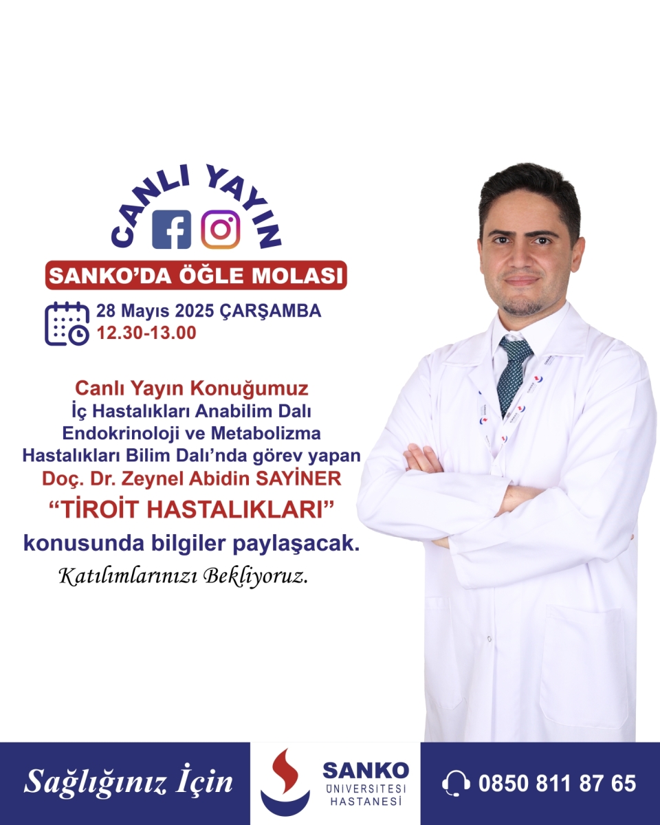 Canlı Yayın Konuğumuz İç Hastalıkları Anabilim Dalı Endokrinoloji ve Metabolizma Hastalıkları Bilim Dalı'nda görev yapan Doç. Dr. Zeynel Abidin SAYİNER“ Tiroit Hastalıkları” konusunda bilgiler paylaştı.
