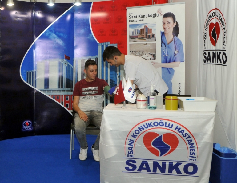 Ziyaretçilerin ve katılımcıların ilgi gösterdiği stantta, dileyen katılımcı ve ziyaretçiler ücretsiz tansiyon ve kan şekeri ölçümü yaptırıyor.