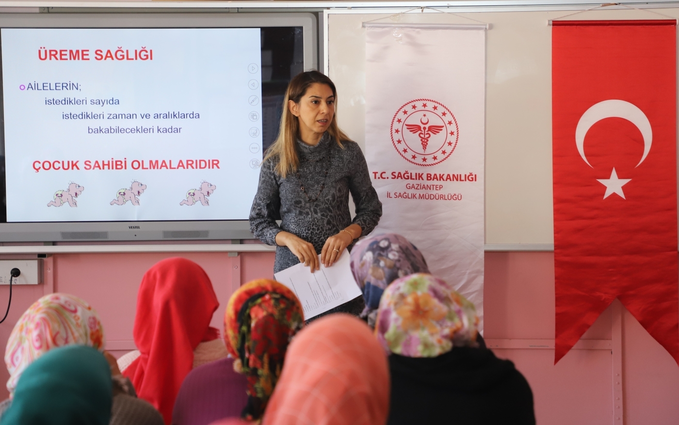 Program kapsamında, İl Sağlık Müdürlüğü Halk Sağlığı Hizmetleri Eğitimcilerinden Uzm. Dr. Ayşe Meltem Ergen, Hemşire Kadriye Özdemir ve Hemşire Duygu Akşahin gebeliğe hazırlık, riskli gebelikler, dikkat edilmesi gereken konular, doğum öncesi izlemler ve bakım, doğum ve lohusalık süreci, bebek izlemleri ve dikkat edilecek konular, yenidoğan tarama programı, anne ve bebek sağlığı, anne sütü ve önemi, üreme sağlığı ile akılcı ilaç kullanımı, afetlerde kadın üreme sağlığı konularında bilgi paylaştı.