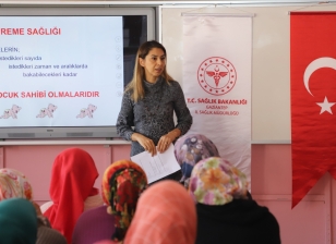 Bir yıllık planlanan eğitimlerin yedincisinde SANKO Üniversitesi Hastanesi Başhemşiresi Ceylan Özyılmaz, hastane personeli ve Halk Sağlığı Hizmetleri Müdürlüğü uzmanları ile Nurdağı İlçesi Geçici Konteyner Merkezi ve Atalar Köyü’nde anne ve anne adayları bir araya geldi.