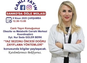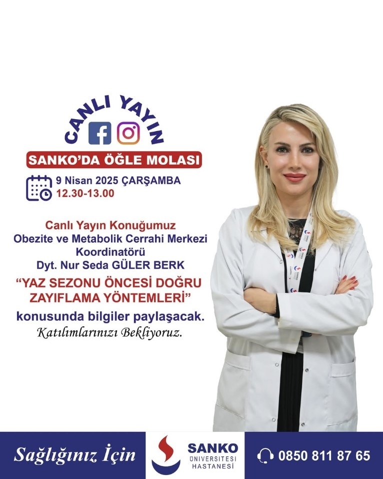 Canlı Yayın Konuğumuz Obezite ve Metabolik Cerrahi Merkezi Koordinatörü Diyetisyen Nur Seda Güler Berk “Yaz sezonu öncesi doğru zayıflama yöntemleri” konusunda bilgiler paylaşacak.