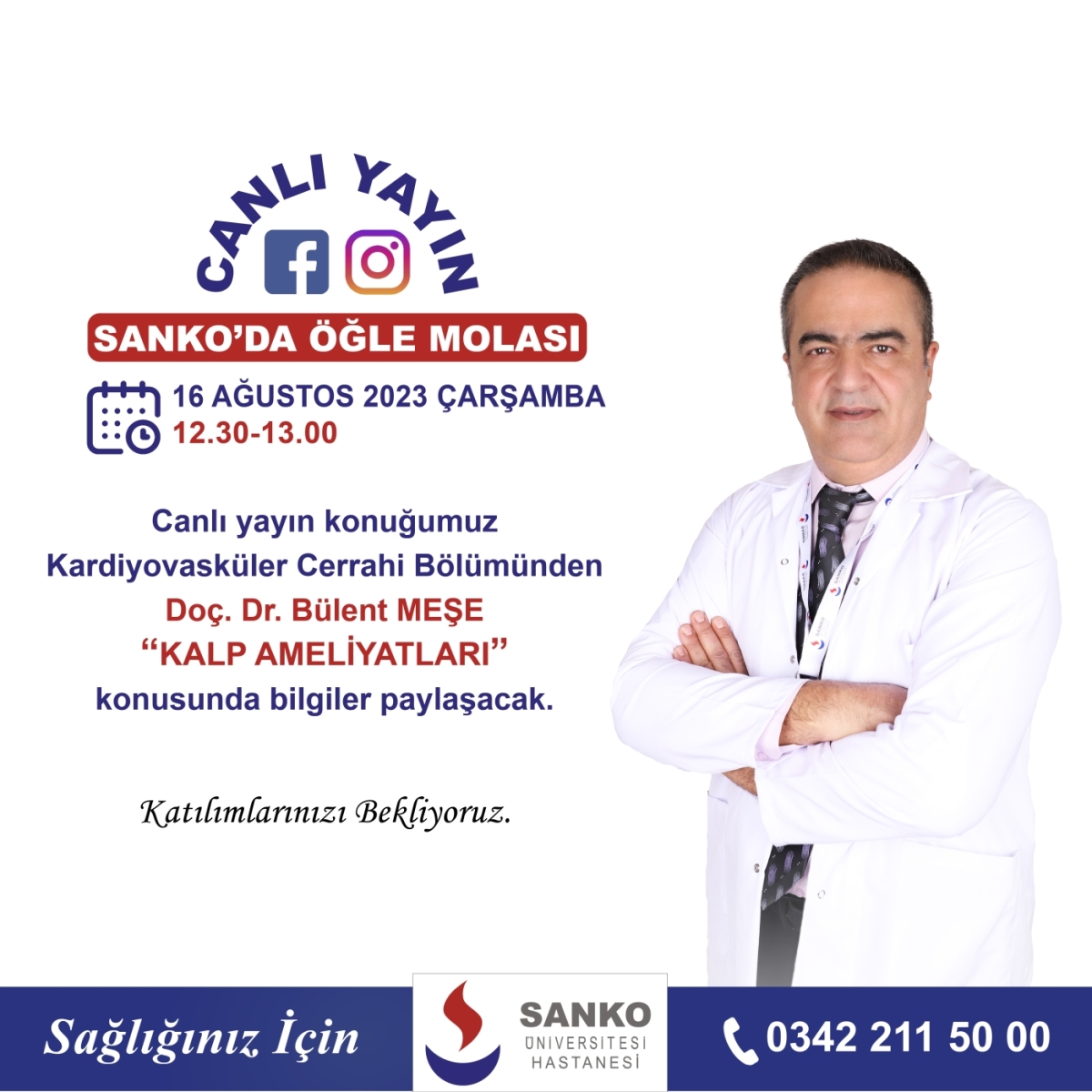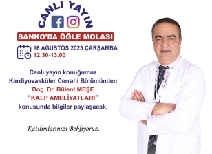 Canlı yayın konuğumuz Kardiyovasküler Cerrahi Bölümünden Doç. Dr. Bülent MEŞE “KALP AMELİYATLARI” konusunda bilgiler paylaşacak.