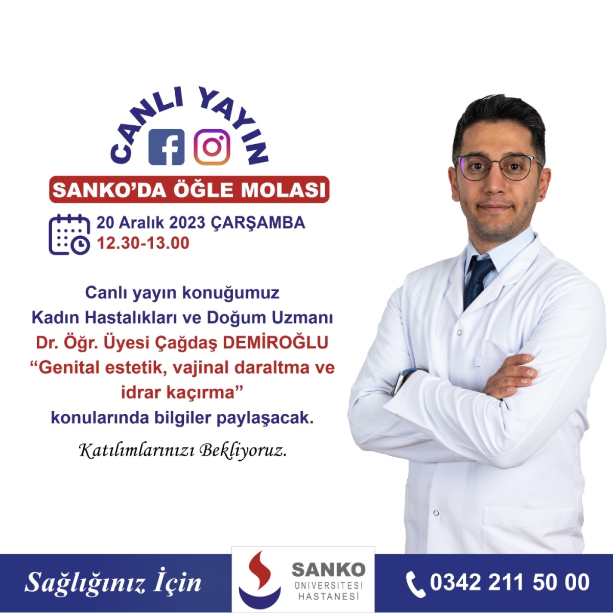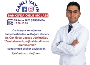 Canlı yayın konuğumuz Kadın Hastalıkları ve Doğum Uzmanı Dr. Öğr. Üyesi Çağdaş Demiroğlu " Genital estetik, vajinal daraltma ve idrar kaçırma" konularında bilgiler paylaşacak.