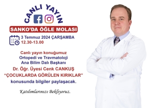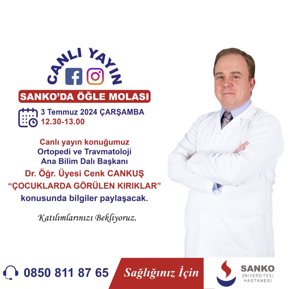 Canlı yayın konuğumuz Ortopedi ve Travmatoloji Ana Bilim Dalı Başkanı Dr. Öğr. Üyesi Cenk CANKUŞ “Çocuklarda Görülen Kırıklar” konusunda bilgiler paylaşacak.