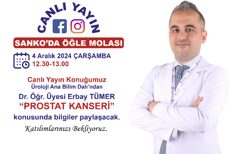 Canlı yayın konuğumuz SANKO Üniversitesi Tıp Fakültesi Üroloji Ana Bilim Dalı'ndan Dr. Öğr. Üyesi Erbay Tümer "Prostat Kanseri" konusunda bilgiler paylaşacak.