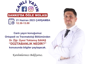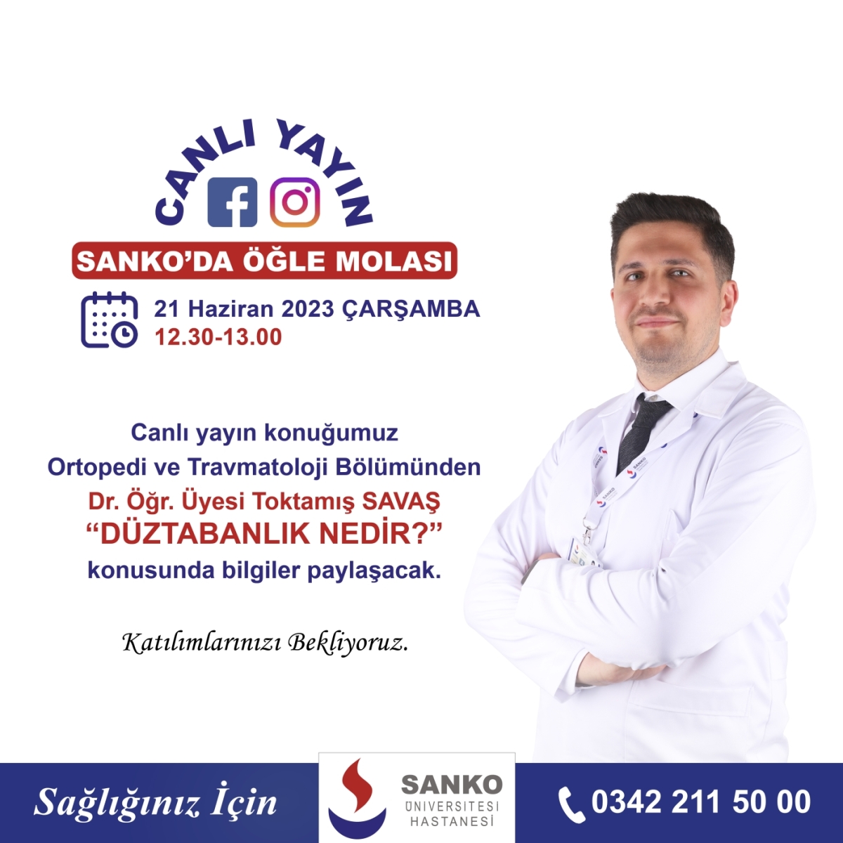 Canlı yayın konuğumuz Ortopedi ve Travmatoloji bölümünden Dr. Öğr. Üyesi Toktamış SAVAŞ "Düztabanlık Nedir?" konusunda bilgiler paylaşacak.