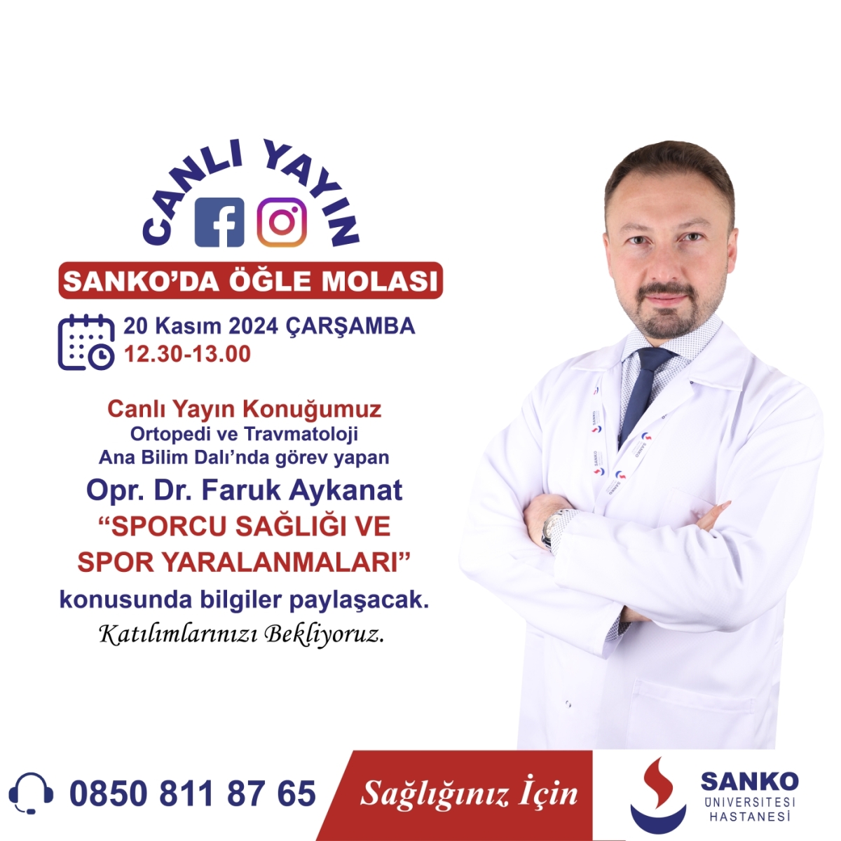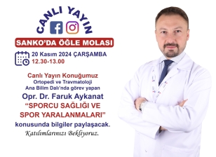 Canlı Yayın Konuğumuz Ortopedi ve Travmatoloji Ana Bilim Dalı’nda görev yapan Opr. Dr. Faruk Aykanat “Sporcu Sağlığı ve Spor Yaralanmaları” konusunda bilgiler paylaşacak.
