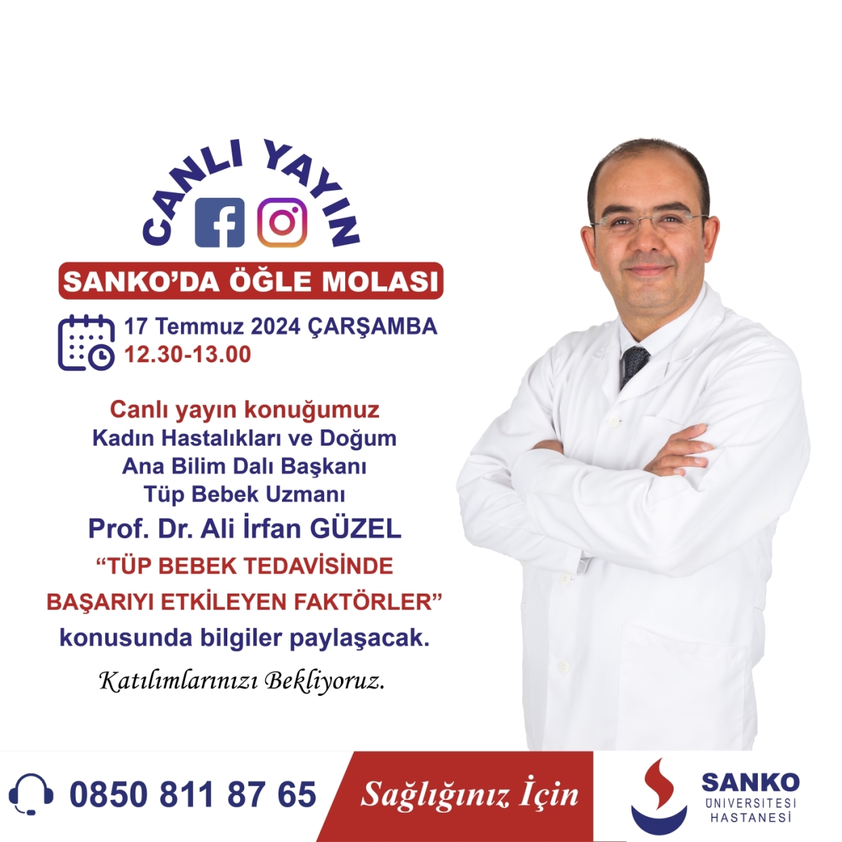 Canlı yayın konuğumuz Kadın Hastalıkları ve Doğum Ana Bilim Dalı Başkanı Tüp Bebek Uzmanı Prof. Dr. Ali İrfan GÜZEL “TÜP BEBEK TEDAVİSİNDE BAŞARIYI ETKİLEYEN FAKTÖRLER” konusunda bilgiler paylaşacak.