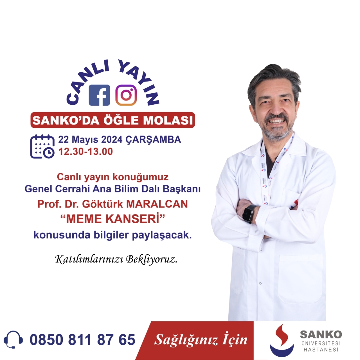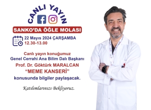 Canlı yayın konuğumuz Genel Cerrahi Ana Bilim Dalı Başkanı Prof. Dr. Göktürk MARALCAN “MEME KANSERİ” konusunda bilgiler paylaşacak.