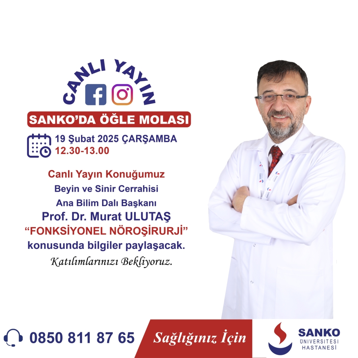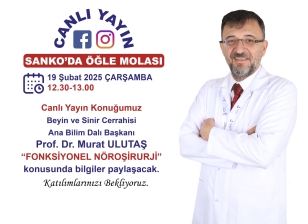 Canlı yayın konuğumuz Beyin ve Sinir Cerrahisi Ana Bilim Dalı Başkanı Prof. Dr. Murat Ulutaş “Fonksiyonel Nöroşirurji” konusunda bilgiler paylaşacak.