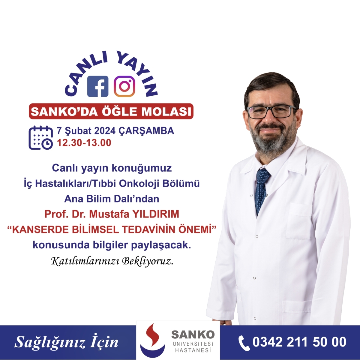 Canlı yayın konuğumuz İç Hastalıkları/Tıbbi Onkoloji Bölümü Ana Bilim Dalı’ndan Prof. Dr. Mustafa YILDIRIM “Kanserde bilimsel tedavinin önemi” konusunda bilgiler paylaşacak.