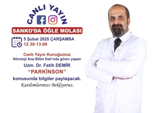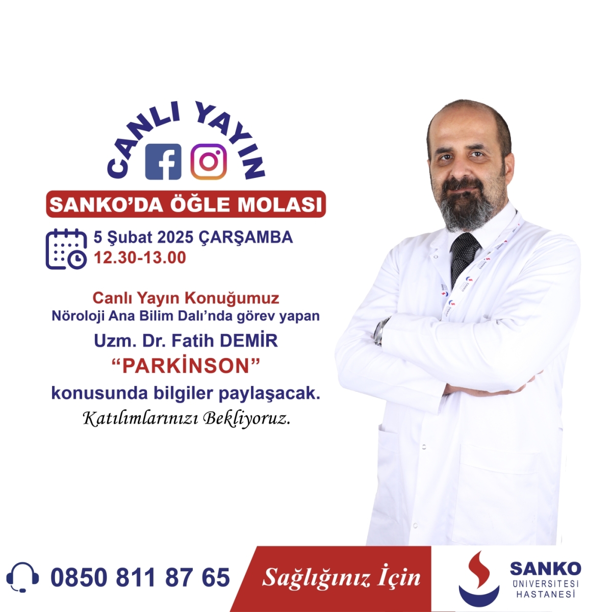 Canlı Yayın Konuğumuz Nöroloji Ana Bilim Dalı’nda görev yapan Uzm. Dr. Fatih DEMİR “PARKİNSON” konusunda bilgiler paylaşacak.