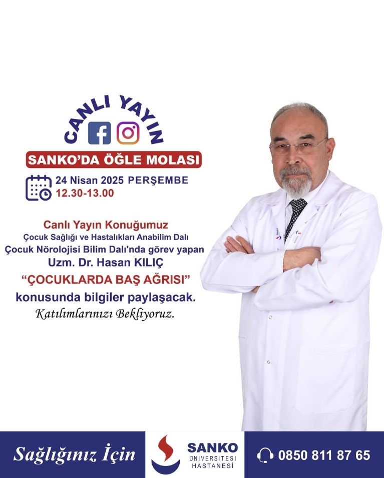 Canlı Yayın Konuğumuz Çocuk Sağlığı ve Hastalıkları Anabilim Dalı/Çocuk Nörolojisi Bilim Dalı'nda görev yapan Uzm. Dr. Hasan Kılıç “Çocuklarda baş ağrısı” konusunda bilgiler paylaşacak.