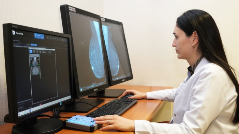 “Bu aşamada tarama yöntemi olarak günümüzde kullandığımız tetkikimiz mamografidir. Mamografi tekniği olarak günümüzde klasik, dijital ve 3D tomosentez mamografi kullanılmakta olup bunlar içerisinde en son teknoloji olan ve duyarlılığı en yüksek olan yöntem 3D tomosentez mamografidir.”