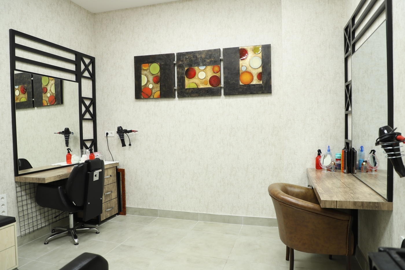 Sterilize ekipmanlarla saç, el ve ayağa dair tüm bakım hizmetleri kuaför salonunda verilmektedir.