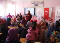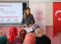 Program kapsamında, İl Sağlık Müdürlüğü Halk Sağlığı Hizmetleri Eğitimcilerinden Uzm. Dr. Ayşe Meltem Ergen, Hemşire Kadriye Özdemir ve Hemşire Duygu Akşahin gebeliğe hazırlık, riskli gebelikler, dikkat edilmesi gereken konular, doğum öncesi izlemler ve bakım, doğum ve lohusalık süreci, bebek izlemleri ve dikkat edilecek konular, yenidoğan tarama programı, anne ve bebek sağlığı, anne sütü ve önemi, üreme sağlığı ile akılcı ilaç kullanımı, afetlerde kadın üreme sağlığı konularında bilgi paylaştı.