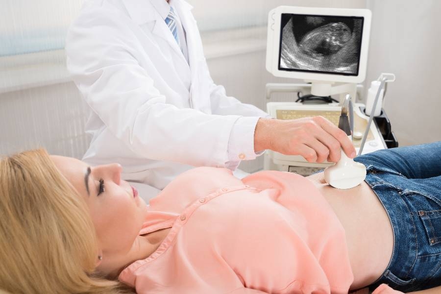 Ultrasonografi tanıda en önemli ikinci araçtır. Özellikle vajinal USG’ler daha hassastır. Son adet tarihine göre gebelik kesesi vajinal USG’de 5–6. haftada gösterilmelidir. Üstten bakılan USG’de gebelik kesesi izlenirse beta-HCG değeri 6.000 İU/mL den fazla demektir ve dış gebeliği ekarte ettirir. Rahimin dışında cenine ait kalp atışını görmek kesinlikle dış gebelik tanısını koydurur. Batın içine kanama olmuşsa batında serbest sıvı görülecektir. Son adet tarihine göre beşinci haftada rahim içinde gebelik kesenin görünmemesi dış gebelik lehinedir. Rahim boş, rahimin dışında kitle görmek, 2 veya 4 cm gibi, beta – HCG’de çok yüksekse 15.000–20.000 gibi tanı kesin dış gebeliktir, hatta cenin kalp atımları bile tespit edilebilir.